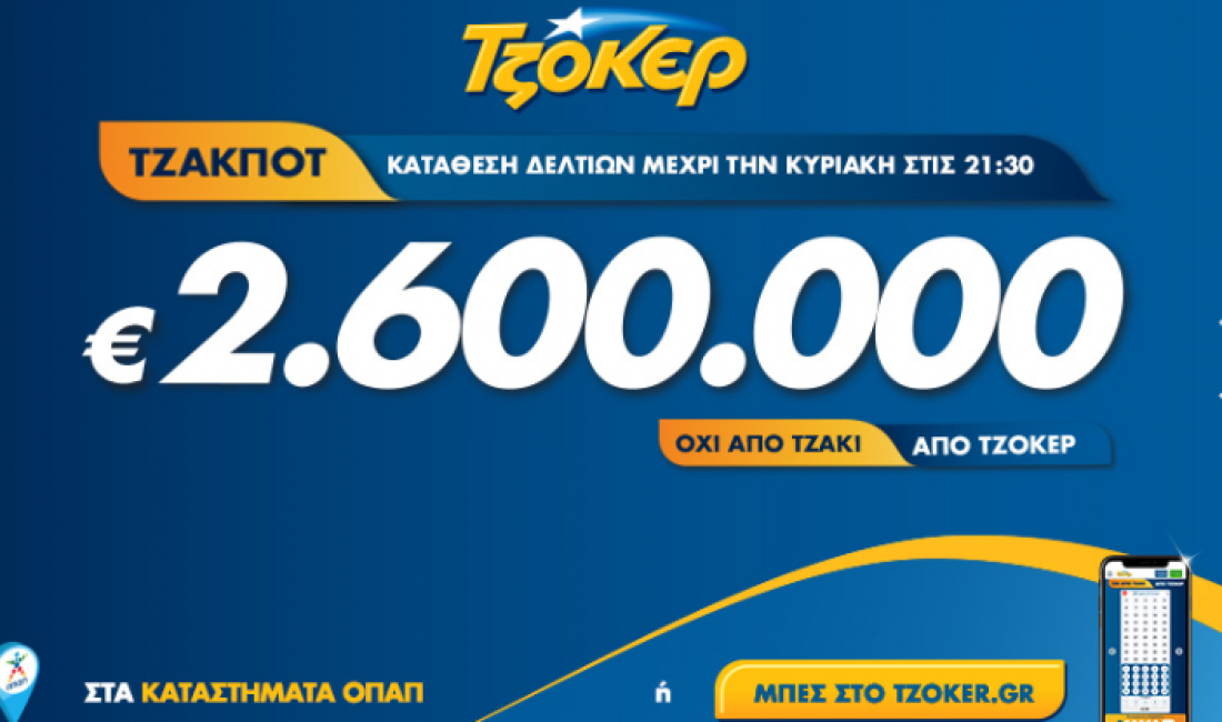 Το ποσό επέστρεψε σε υψηλά επίπεδα και όλοι. Τουλάχιστον 3800000 ευρώ θα μοιράσει απόψε στους τυχερούς της 1ης κατηγορίας η Κλήρωση 2332 του Τζόκερ του ΟΠΑΠ. Ένας υπερτυχερός κερδίζει 5104000.