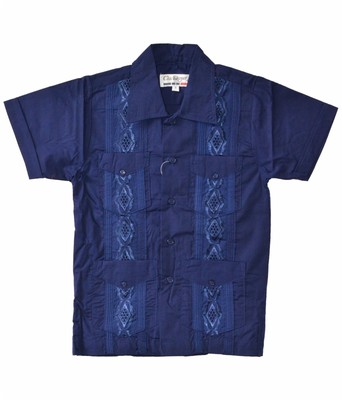 Maximos Boys Guayabera Button Up Cuban Mexican Embroidered Shirt Denim Blue Ebay